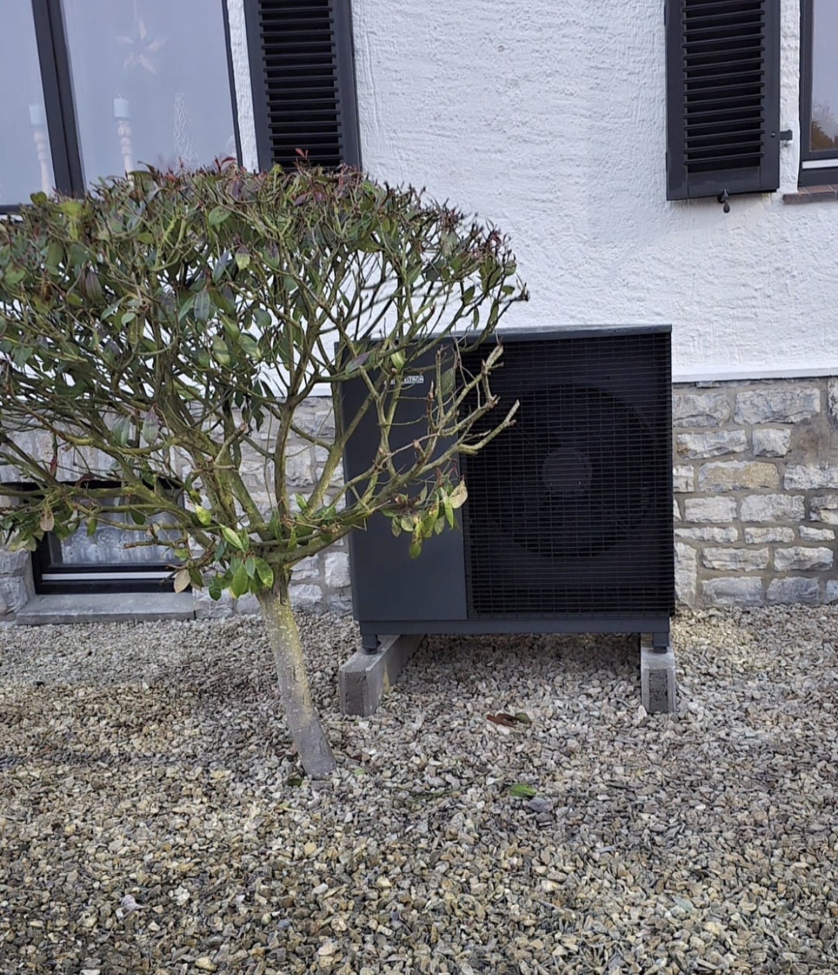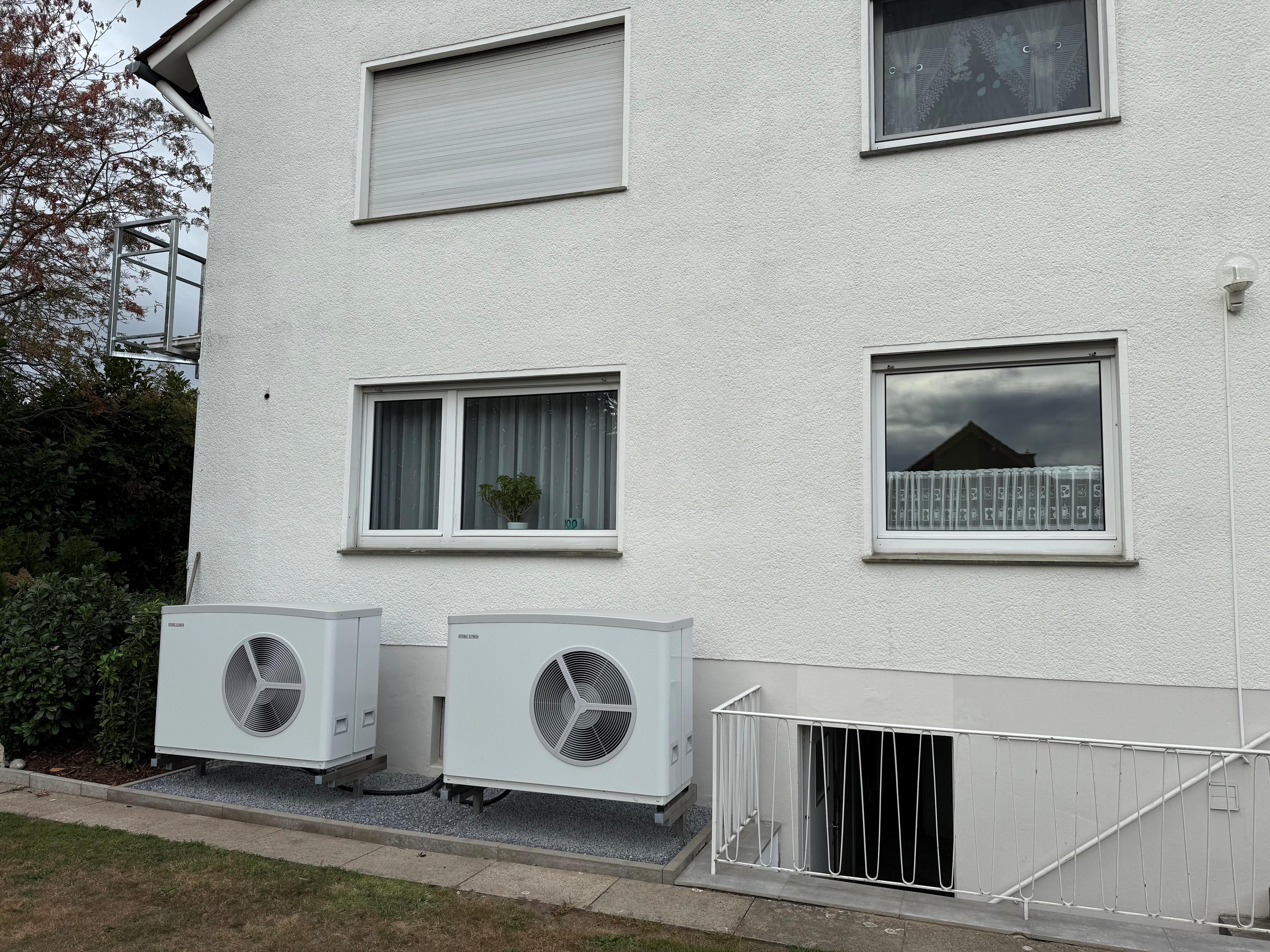 Hier beweisen wir, dass ebenfalls Bestandsgebäude mit neuen Wärmepumpen ausgestattet werden können. Das Einfamilienhaus hat eine Luft-Wasserwärmepumpe mit Wassergeführten Leitungen zum Außengerät erhalten. Das Innengerät übergibt die von der Außenluft erhaltene Energie dann an das bestehende Heizungsnetz ab.